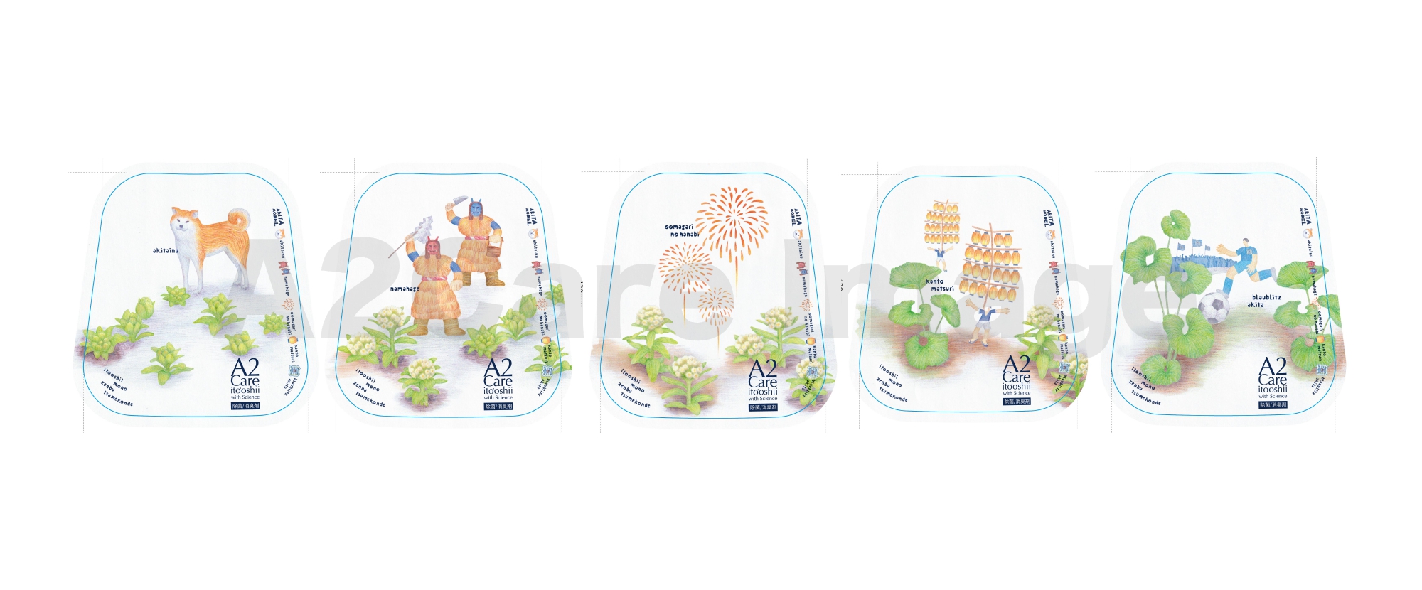 A2Care秋田ボトルは、秋田犬、なまはげ、花火、竿燈、そしてJ2リーグサッカークラブ「ブラウブリッツ秋田」といった秋田を象徴する5つのモチーフを採用。